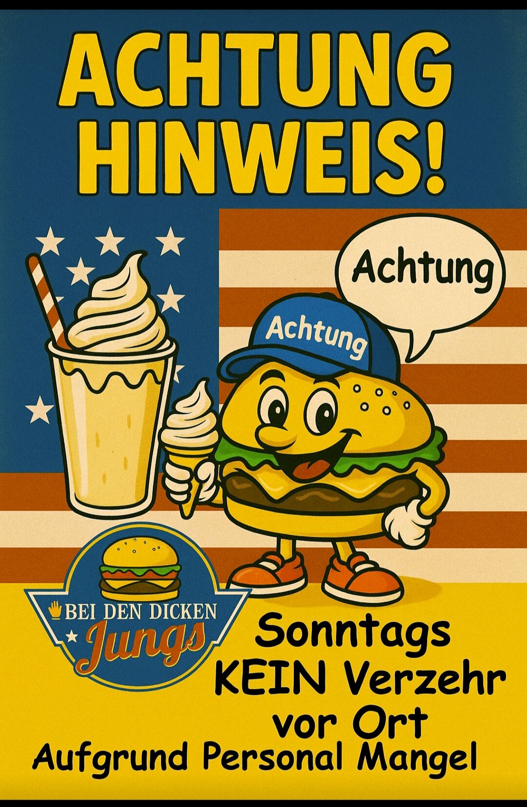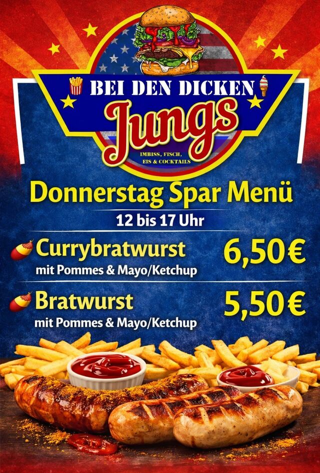 Wir – die drei von „Bei den dicken Jungs“ – brennen für unsere Arbeit und bringen Ihnen authentische deutsche Küche in einem Imbiss, der herzlich, direkt und anders ist. Neben unseren herzhaften Gerichten bieten wir auch hochwertigen Honig von einer regionalen Imkerin an. Schauen Sie vorbei und erleben Sie, was Leidenschaft bewirken kann!